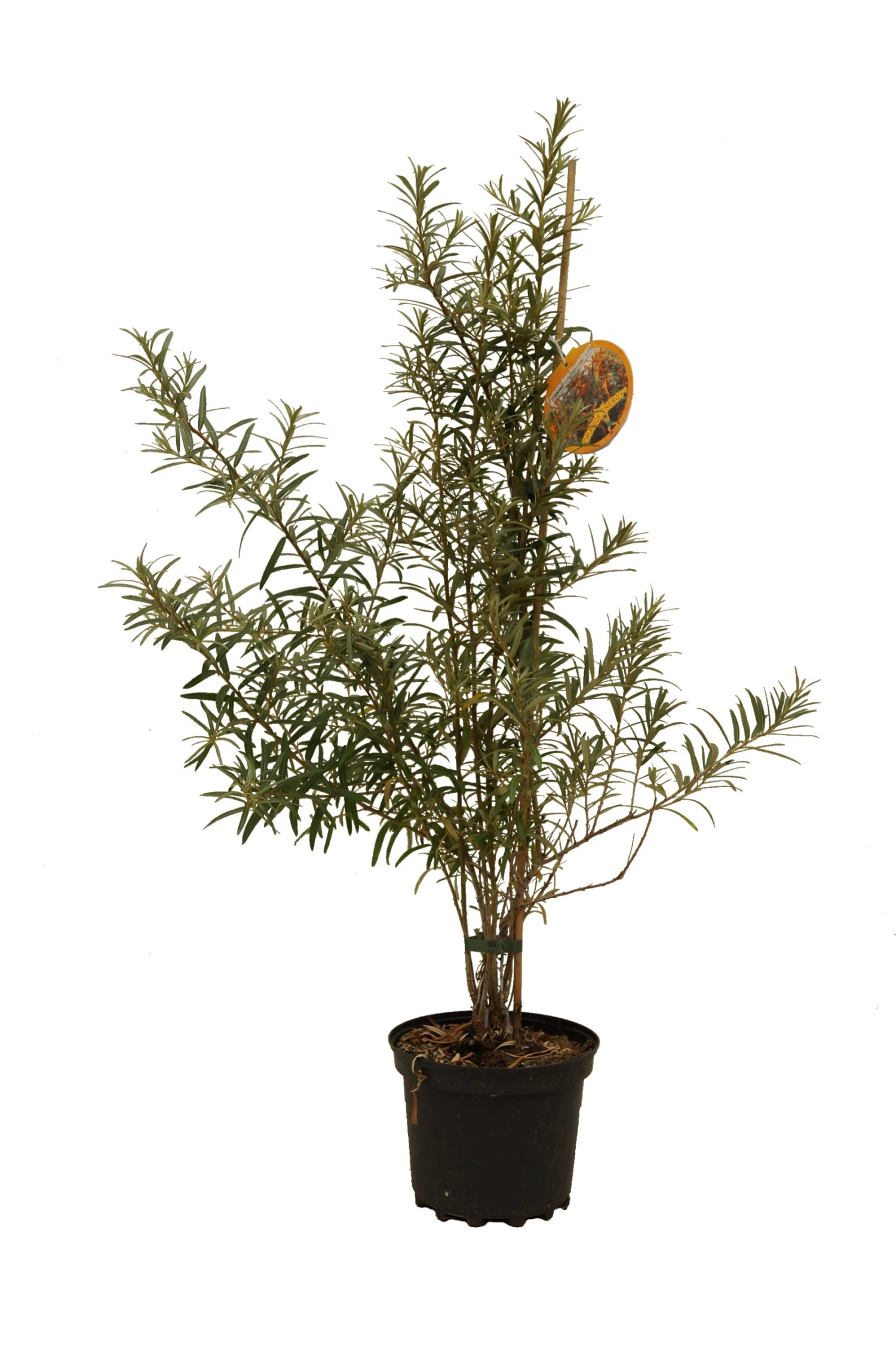 Gesundner, aufrechter, strauchartiger Wuchs mit ausladender Seitenverzweigung. Nur sehr wenige Dornen, daher deutlich einfacher zu ernten. Große, leuchtend-orange Früchte, die ihre Frabe bei Vollreife beibehalten und nicht verblassen. Ausgesprochen hohe Erträge ab Mitte September. Wohl die ertragreichste auf dem Markt befindliche Sorte. Zur Bestäubung empfehlen wir die männliche Sorte Pollmix.